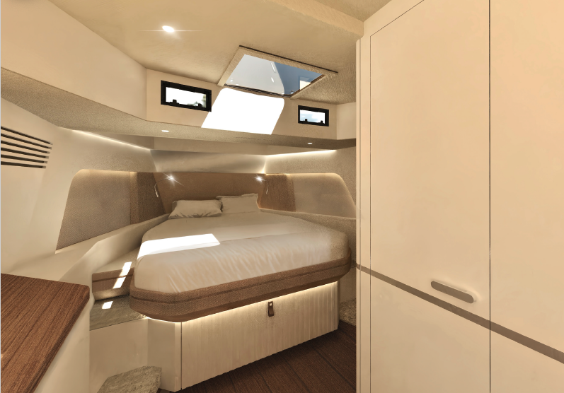 L’ASTOR 36 allie à la perfection design sophistiqué et fonctionnalité. Ce walkaround se distingue par ses lignes épurées et ses terrasses ouvertes en standard, créant un espace de navigation optimisé et offrant une expérience inoubliable. L’ASTOR 36 est conçu pour allier performance, confort et esthétique, offrant des aménagements à bord qui garantissent un séjour agréable et pratique.