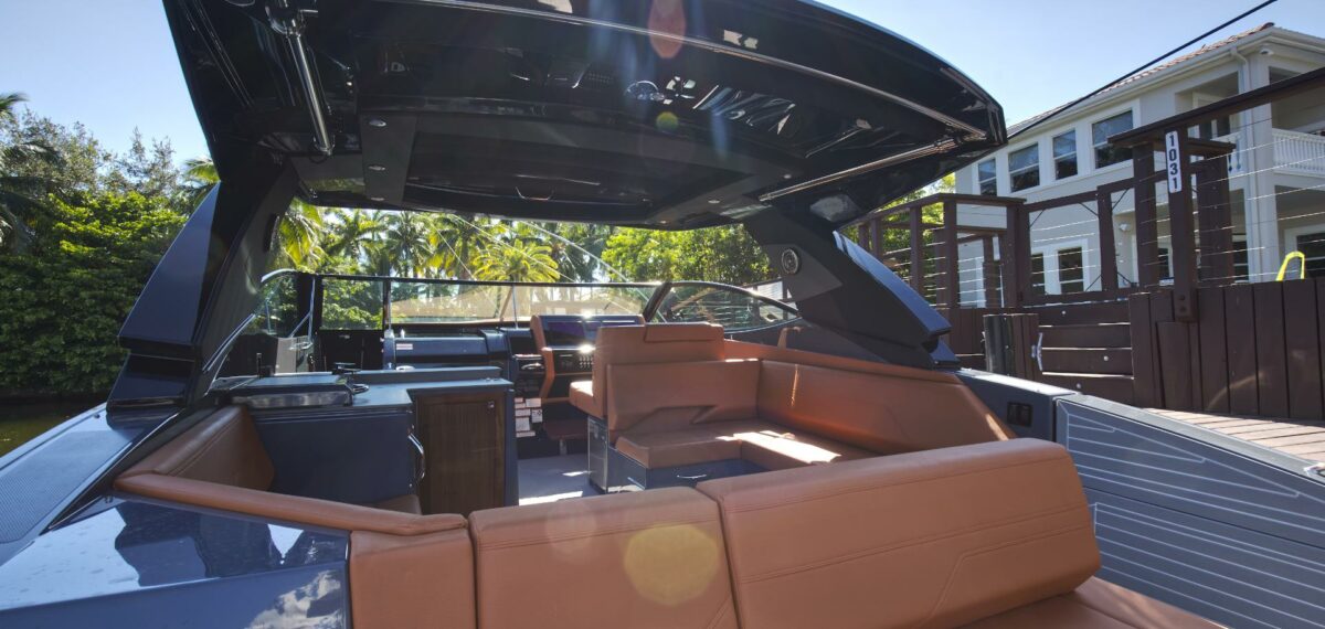 Alliant confort et performances, le Cruisers Yachts 38 GLS “Knee Deep” est le choix idéal pour ceux qui recherchent un bateau à la pointe de l’innovation. Profitez d’une navigation fluide grâce au Seakeeper 3 et au joystick avec Skyhook. La plateforme de bain hydraulique et la porte latérale offrent un accès direct et pratique à l’eau, tandis que le toit ouvrant rétractable et le pare-soleil arrière s’adaptent parfaitement à vos besoins.