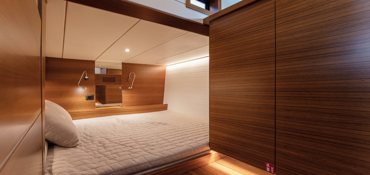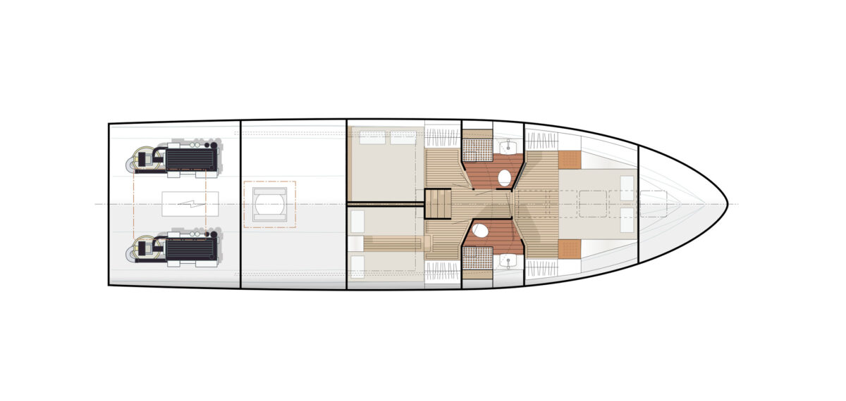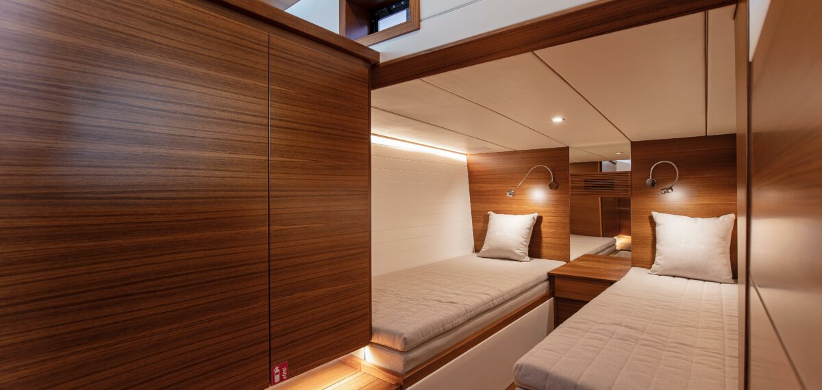La plage de baignade/plateforme hydraulique pour tender et la passerelle intégrée offrent un accès facile à l’eau, tandis que la cuisine entièrement équipée avec des appareils Siemens vous permet de savourer de délicieux repas à bord. Le yacht dispose également d’un bar humide, d’un système Garmin Glass Cockpit avec 2 écrans multifonctions de 22”, d’un radar Garmin xHD2, et d’une batterie lithium pour plus de durabilité et de fiabilité.