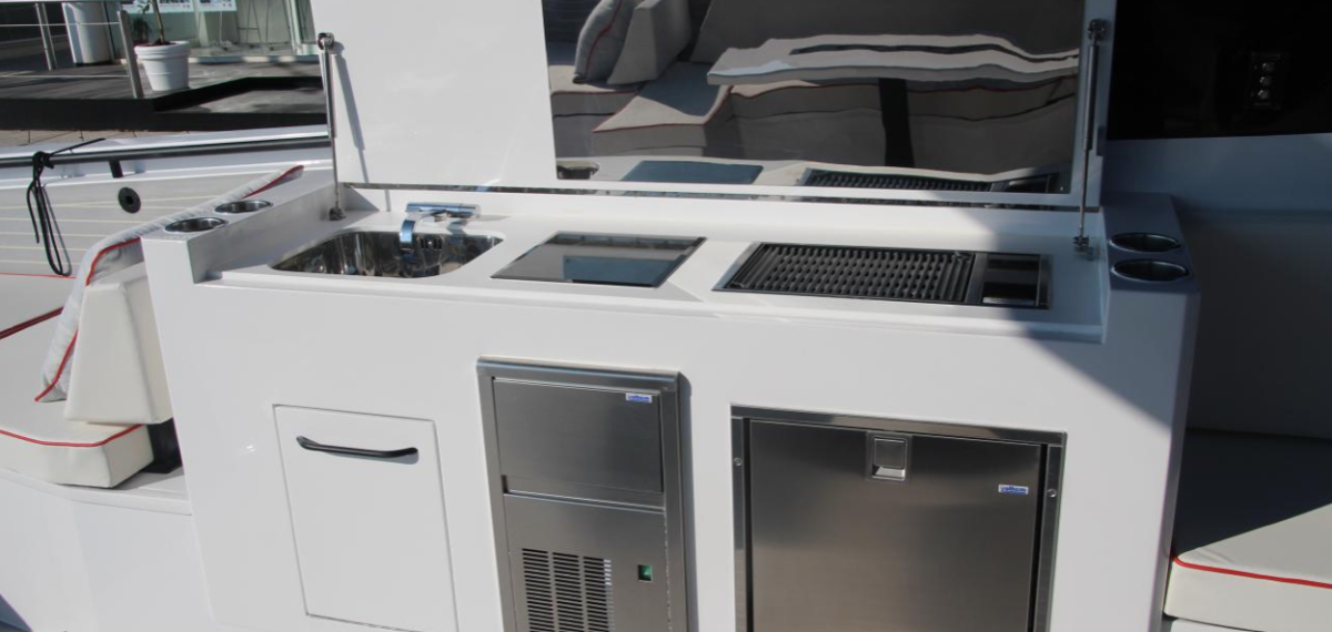 -Hydraulic hinged aft side combings that transform into side balconies.
