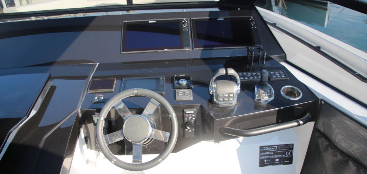 The Okean 55´ SPORT motorboat has several layout options available, offering also closed controls and access doors to the aft deck.