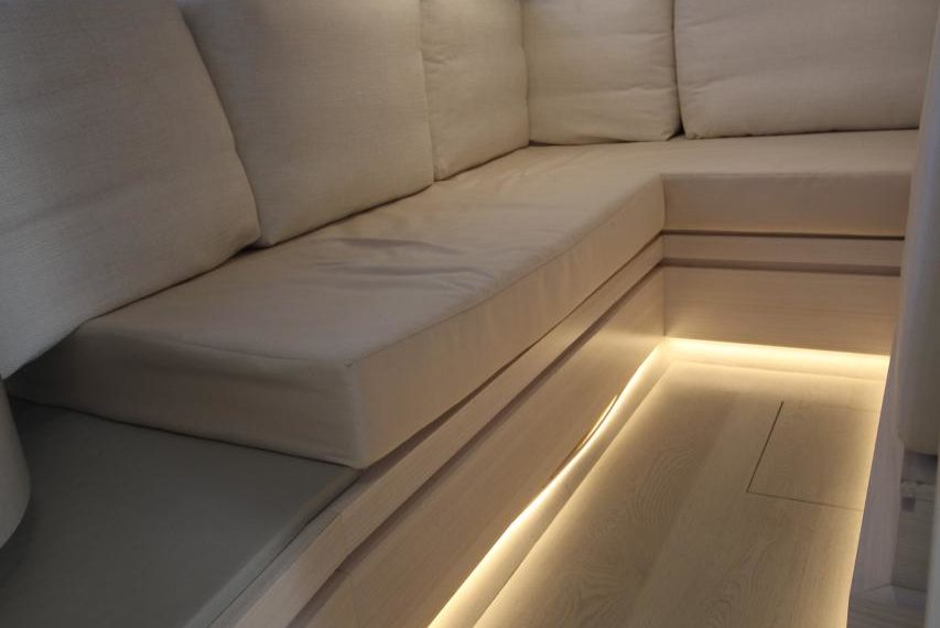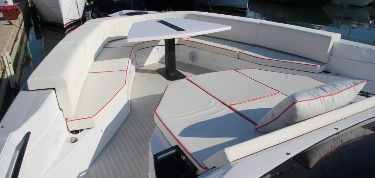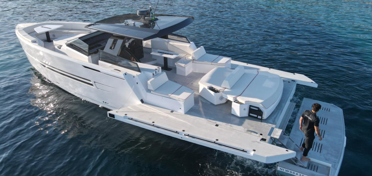 One of the main highlights is the layout that interconnects the internal and external parts of the vessel, forming a unique environment, a deck over the sea.