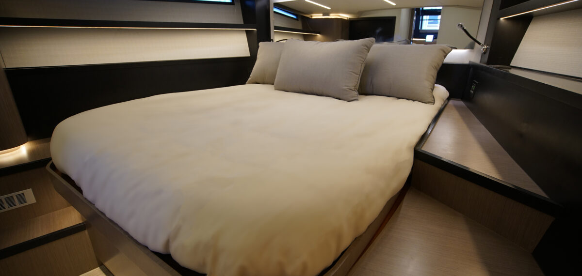 Ce modèle 2025 propose une disposition magnifiquement conçue, parfaite pour l’aménagement et les espaces de divertissement. Sa couleur de coque blanche et sa motorisation Volvo D8 IPS 800 offrent une navigation fluide et dynamique, tout en garantissant une excellente maniabilité.