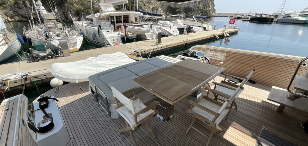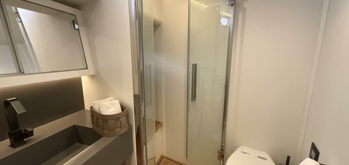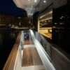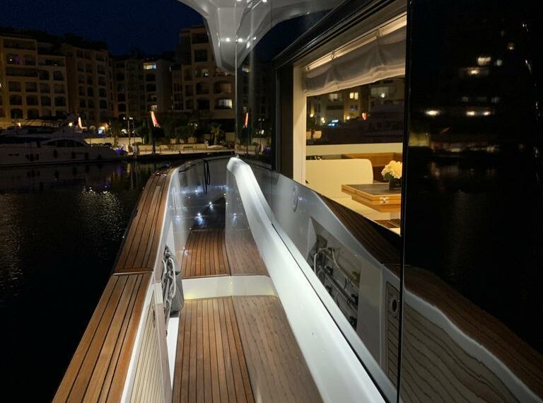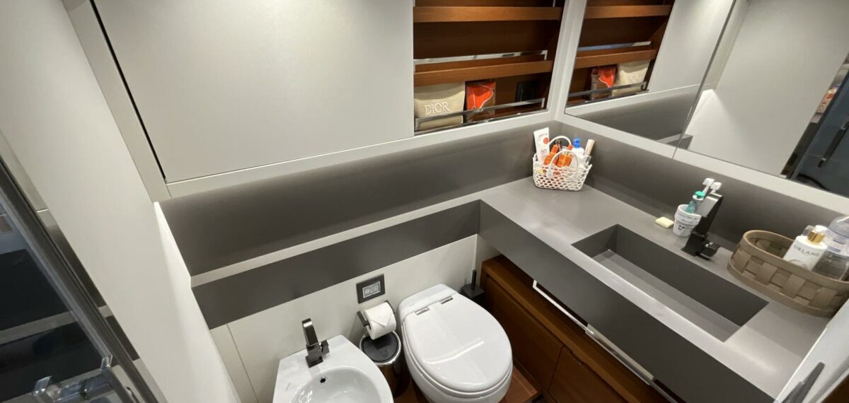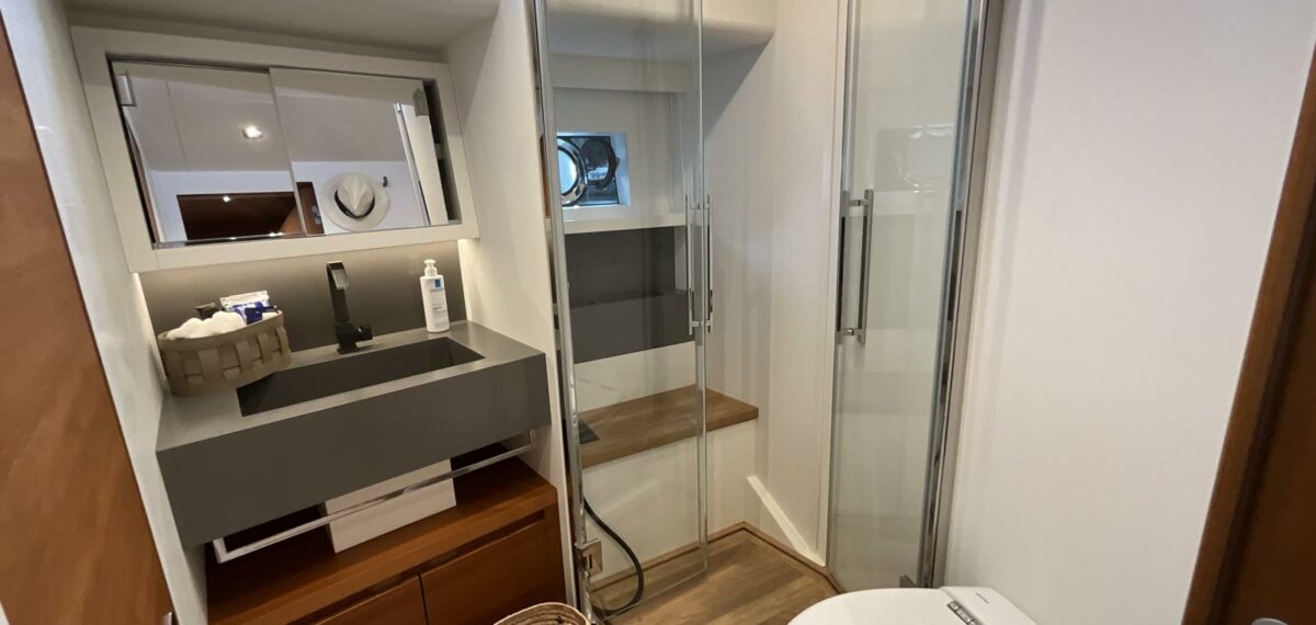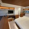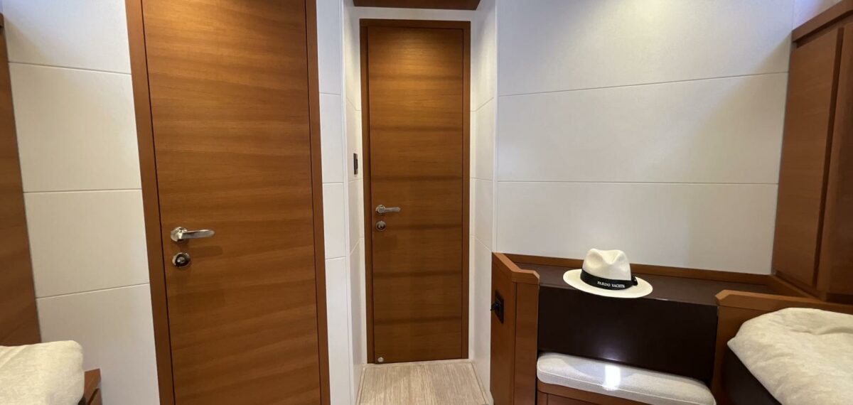 La suite principale est située au centre du bateau, exploitant toute la largeur pour offrir un espace impressionnant, offrant ainsi un confort incomparable. Le cabine d’équipage, accessible depuis le pont arrière, est équipée de deux lits, d’une salle de bain et d’un accès direct à la salle des machines, permettant de garantir une expérience fluide et sans souci pendant vos croisières.