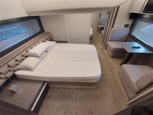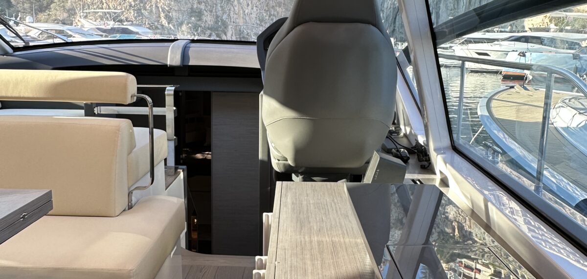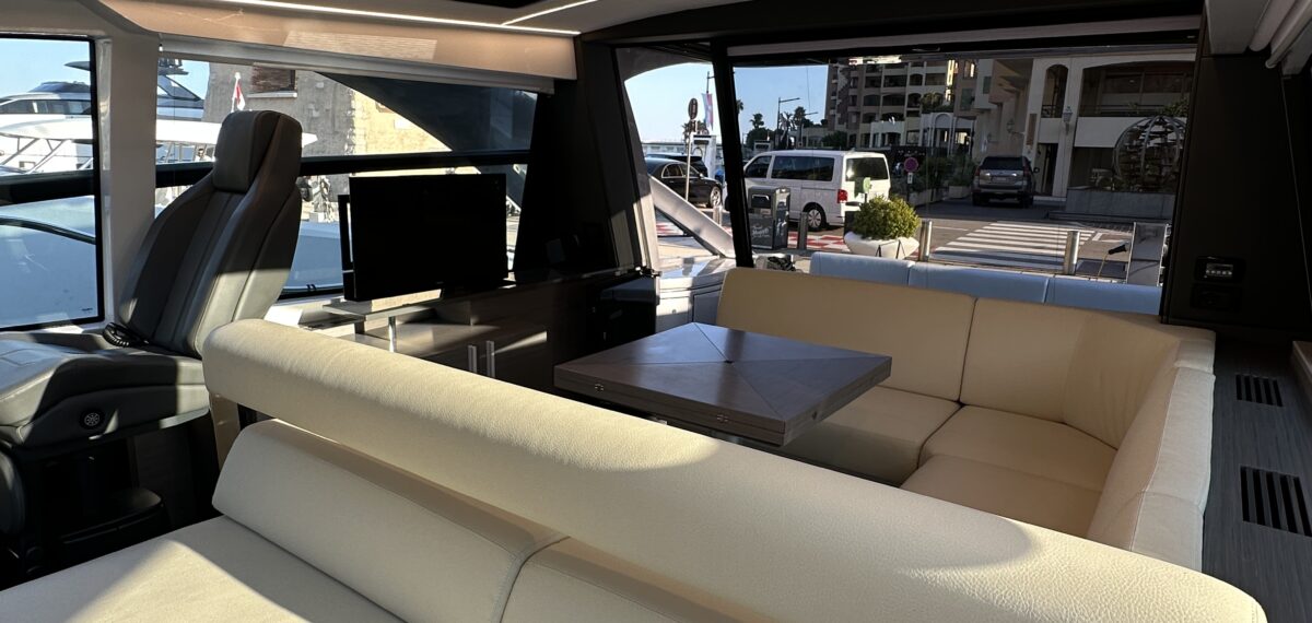 Ce yacht dispose d’équipements haut de gamme, comme un système audio de qualité supérieure, des espaces de rangement optimisés, un cockpit spacieux et un stabilisateur Seakeeper pour une expérience de navigation exceptionnelle.