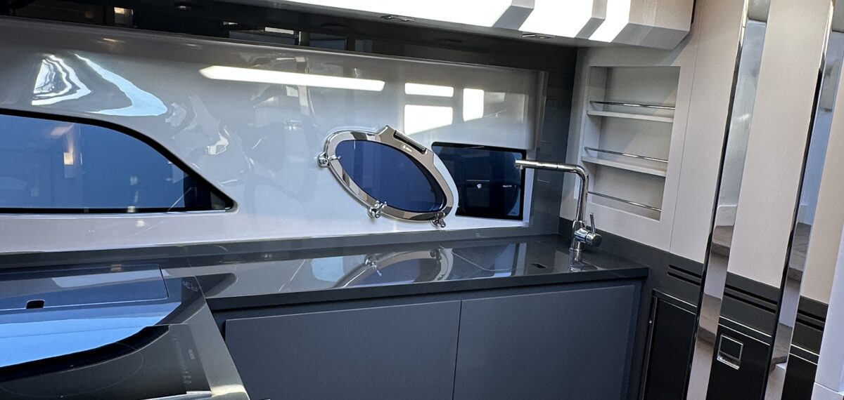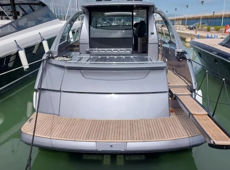 L’extérieur, entièrement habillé de teck, reflète l’élégance caractéristique de Pershing et offre un espace idéal pour profiter de la mer. Le système Auto Trim pour IPS assure une navigation fluide et agréable.