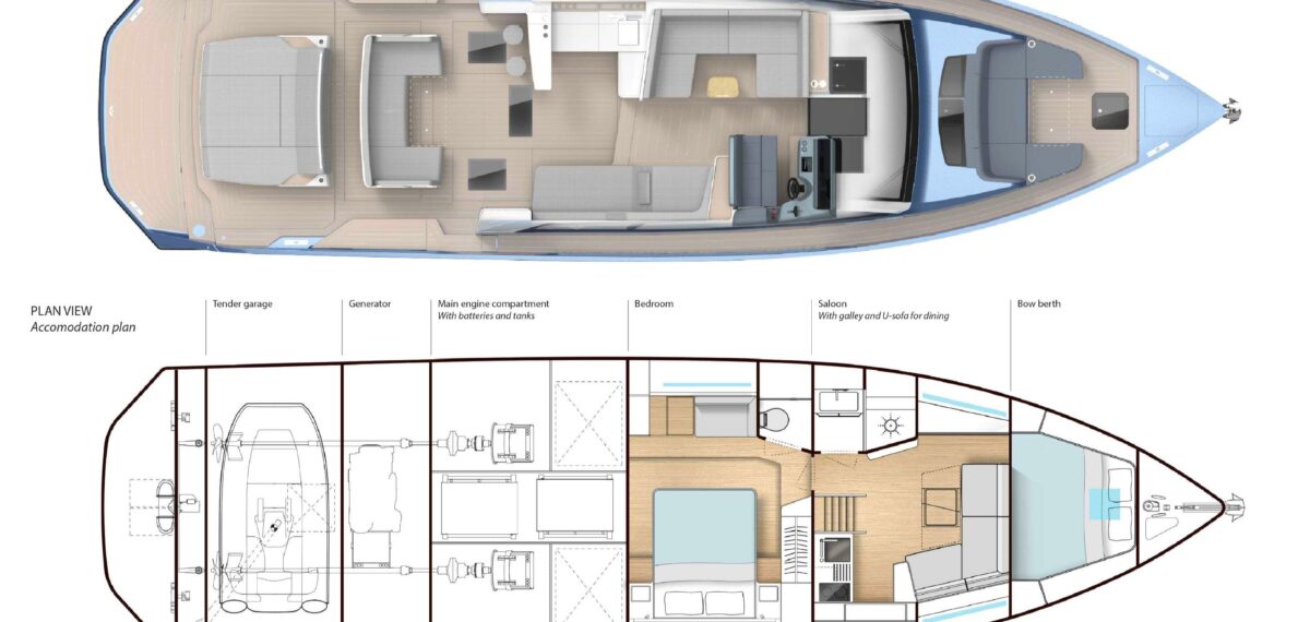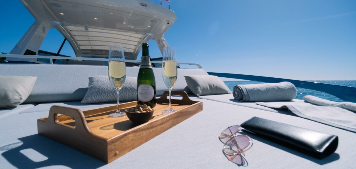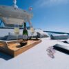 Le pont du yacht propose de nombreuses options de sièges, à la fois sur le pont avant abrité et sur le vaste pont arrière ouvert. Lorsque la météo le permet, le toit convertible permet de profiter pleinement de la sensation d’être en mer. La cuisine extérieure est entièrement équipée pour répondre à toutes vos envies pendant la croisière.