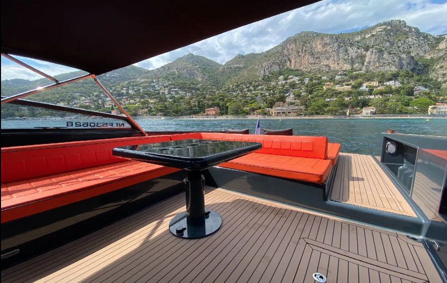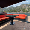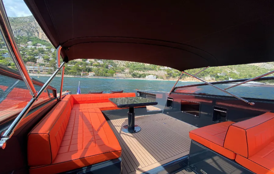 Son cockpit spacieux invite à la détente avec une banquette en L qui s’ouvre sur une cuisine d’été moderne et fonctionnelle à l’avant. À l’arrière, la banquette s’étend pour créer un espace bain de soleil, permettant de se relaxer tout en profitant des rayons du soleil.