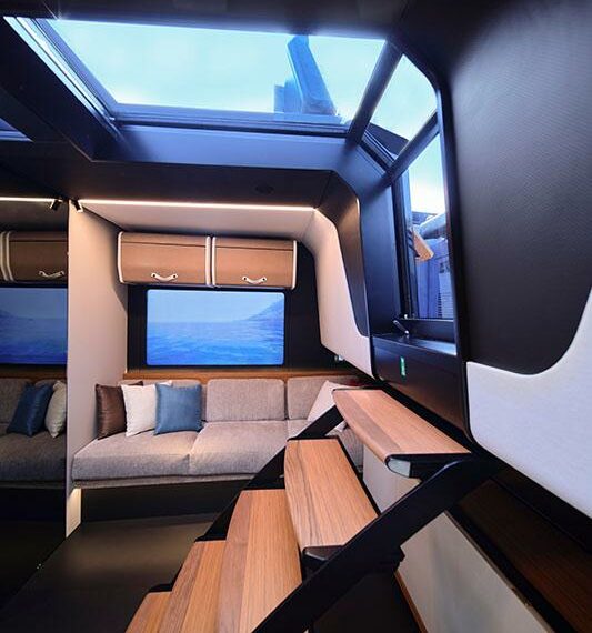 Le système audio Premium JL avec subwoofer garantit une qualité sonore exceptionnelle, tandis que l’éclairage sous-marin blanc à l’arrière et sur les côtés sublime l’esthétique nocturne. Les cabines sont dotées de toilettes en carbone, reflétant le souci du détail et l’innovation typique de Wally.